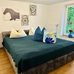 Hier können Gäste einen Ausblick auf den Garten genießen sowie einen Flachbildfernseher mit Satellitenkanälen und ein Fernsehen mit mehreren Kanälen nutzen. Die Unterkunft in Quedlinburg verfügt über ein Badezimmer mit einer getrennten Toilette und einer Dusche. Handtücher werden auch angeboten.